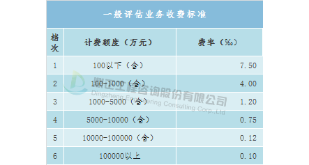 評價費用=(評價費用上限—評價費用下限)×(總投資額—投資區間下限)/(投資區間上限—投資區間下限)+評價費用下限