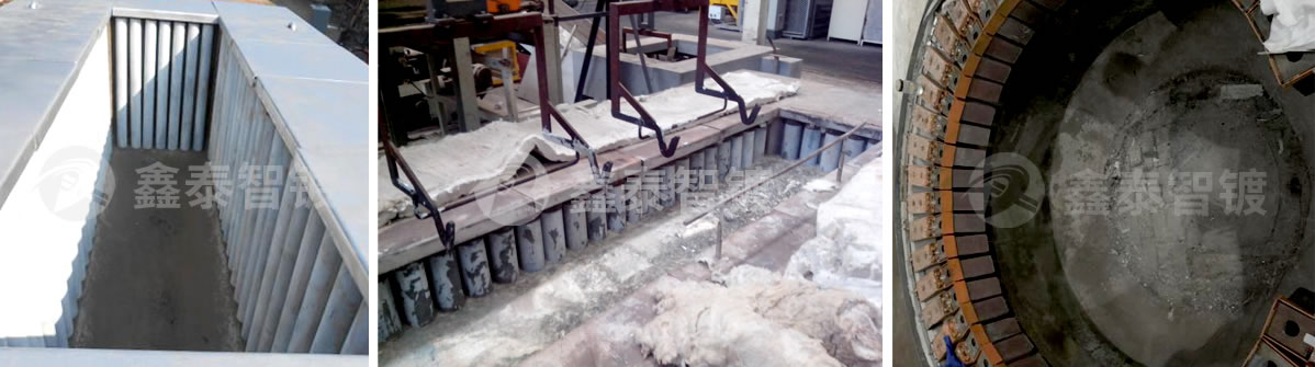 采用復合保溫技術,主體框架內外采用四層保溫層結合,內層采用等高溫陶瓷耐火澆注料澆注成型,并增加復合保溫層,外層采用優質耐火纖維等材料保溫,鋅鍋底部采用坡型結構,方便清理鋅渣。陶瓷鋅鍋經過簡單的定期維護,使用壽命可達十年以上;加熱系統采用高導熱陶瓷內加熱器加熱,布置于鋅鍋內壁四面確保鋅液均勻升溫。